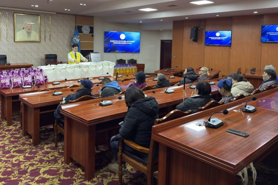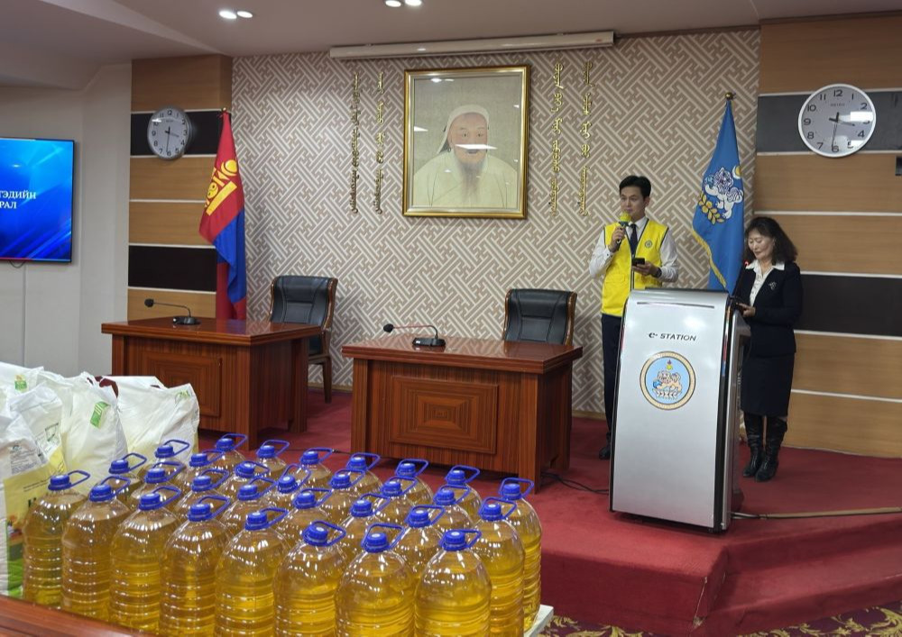 2025.10.22-ны өдөр Бурханы сүмийн төлөөлөл Баянзүрх дүүргийн ИТХ-ын танхимд зочилж, тус бүрд 10 кг 1-р гурил, 5 л тос, 5 кг элсэн чихэр бүхий 30 багцыг гардуулан өгөв.
