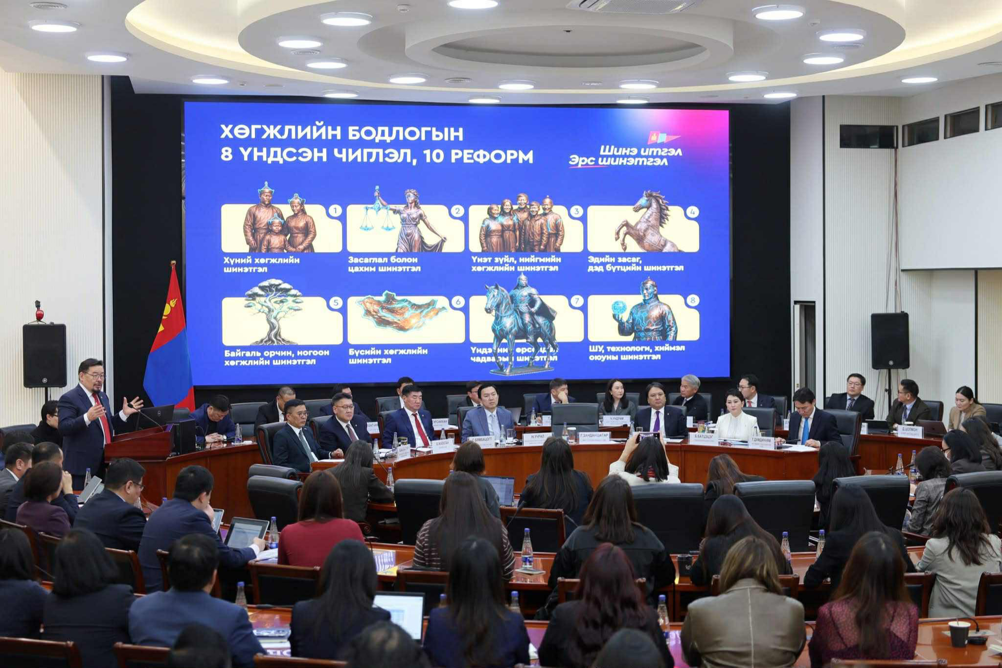 Засгийн газраас Монгол Улсыг 2026-2030 онд хөгжүүлэх таван жилийн үндсэн чиглэлийг боловсруулжээ. Энэ асуудлаар Ерөнхий сайд Г.Занданшатар тэргүүтэй сайд нар өчигдөр олон нийтэд мэдээлэл өглөө. Энэ бол төлөвлөгөө биш, харин монгол хүн бүрийн амьдралд бодит өөрчлөлт авчрах бидний хамтын зорилго юм шүү гэдгийг Ерөнхий сайд онцлов. Засгийн газраас "Шинэ итгэл - Эрс шинэтгэл" бодлогын хүрээнд 10 ажил хийж, үр дүнд хүргэнэ гэлээ.
