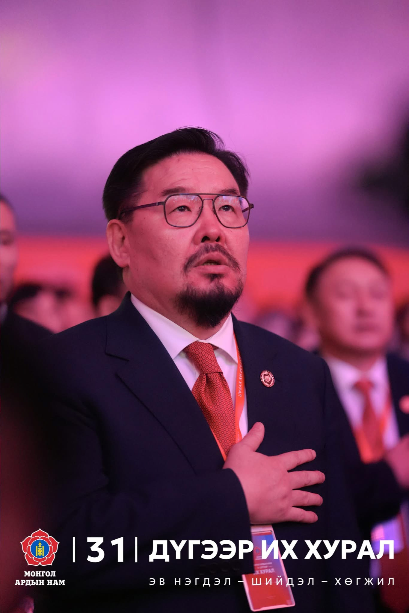 Тэрээр хийж хэрэгжүүлэх найман ажлаа танилцууллаа. Мөн "Манай нам бол төрөө байгуулагч, төрөө баталгаажуулагч. Тиймээс намын ажлыг сайжруулах, боловсон хүчний бодлогыг дэмжих, анхан шатаа анхаарах нь төрийн ажил юм. Эдгээр ажлаа үргэлжлүүлэхийн тулд би намын даргад өрсөлдөхгүй гэдгээ мэдэгдсэн. Анхнаасаа би дарга, цэрэг болж албан тушаалд шунаагүй ээ. Журмын нөхөд минь санал, сэтгэл нэгдээд "Энэ хүнд цаг үед ачаа үүр" гэж надад даалгасан. "Үүнээс ухрах эрхгүй" гэж үзэж, ардын намынхаа саналаас ухрахгүйгээр саналыг хүлээж авсан. Тухайн үед намын Бага хурлын гишүүд "Ерөнхий сайд намынхаа захиргааны болон улстөрийн эрх мэдлийг хамтад нь үүр" гэдэг саналыг хэлсэн. Би гэнэн цайлганаар итгээд л явсан. Ажлаа ч сайжруулъя гэж бодсон. Засгийнхаа ажлыг сайжруулж, энэ хямралыг давъя гэж өдөр шөнөгүй зүтгэсэн. Аливаа асуудалд ороод гэнэт намын даргын төлөө тэмцэж улайрсан зүйл байхгүй. Албан тушаалаас илүү зарчим, хууль, дэг журмыг баримиталж хатуу зогсох зүйл дээр хатуу зогссон. Албан тушаалын биш ардын намынхаа төлөө зогсож байгаа гэдгээ амьдаар нь харуулахын тулд нэрээ татаж мэдэгдэл хийсэн. Улс эх орныхоо эрх ашгийг бодож, давхар дээлээс татгалзсан" гэв.