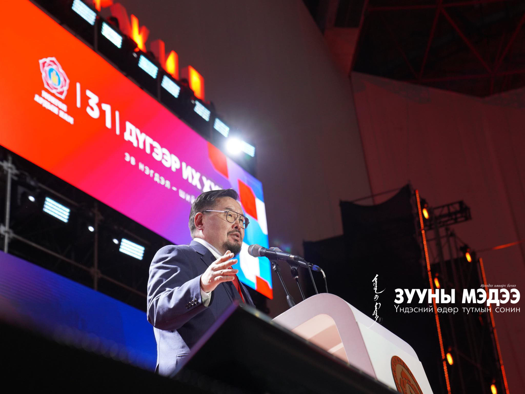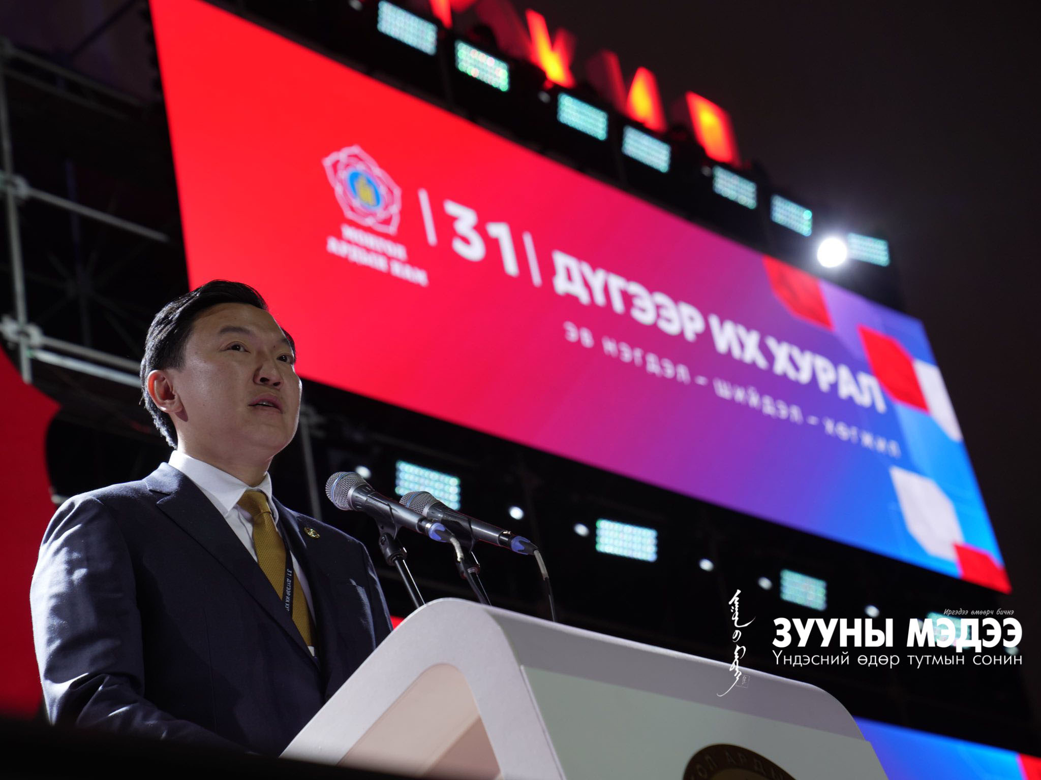 -Та бид хамтдаа 2024 оны УИХ-ын сонгуульд бүсчилж томсгосон тойрог, холимог тогтолцоогоор өрсөлдөж, 126 гишүүнтэй анхны парламентад олонхын суудал авч, тусгаар тогтнол, эрх чөлөөний бэлгэдэл болсон 100 жилийн түүхтэй МАН-аа нэгэн зуунаас шинэ зуунд ялалтаар хамтдаа түүчээлж чадлаа. Бид хамтдаа эв нэгдлээ хангаж, ирээдүй рүү харах ёстой. Тийм ч учраас МАН-ын 31 дүгээр Их хурал Эв нэгдлийн Их хурал байх ёстой. МАН эв нэгдлээ олж, цааш цаашдын сорилтыг даван туулж чадна гэдэгт миний хувьд итгэл төгс байна. Цаг хугацаа өнгөрөх тусах бодит үйл хэрэг, үнэт үзэл бодол тодорч чадна гэдэгт итгэдэг. Ялалт байгуулсан намыг бүрэн эрхийн хугацаатай нь хүлээлгэн өгч байгаадаа баяртай байна. Шинэ намын дарга намын түүхт 31 дүгээр Их хурлаас сонгогдох удирдлагын баг Монгол Ардын намаа 2027 оны Ерөнхийлөгчийн сонгуульд ялалт байгуулж ажиллахын ерөөл дэвшүүлье. Би бүх талаар дэмжиж ажиллах болно. Намын дарга байна гэдэг их хэцүү ажил юм байна. Тиймээс дараагийн шинэ даргаа бүх талаар хүрээлж, хайрлаж, хамгаалж, нэг баг болж, дараагийн ялалтын төлөө, бусдынхаа төлөө түүчээ шувуу шиг манлайлан ажиллахын төлөө ажиллахад нь хамт байх нь чухал.