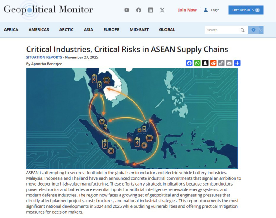 Зүүн Өмнөд Азийн орнуудын холбоо буюу АСЕАН нь дэлхийн хагас дамжуулагч болон цахилгаан тээврийн хэрэгслийн батарейны үйлдвэрлэлд байр сууриа бэхжүүлэхийг чармайж байна. Одоогоор Малайз, Индонез, Тайланд улсууд дээр дурдсан хоёр салбарт өндөр өртөг шингээсэн үйлдвэрлэл рүү нэг мөр шилжих хүсэл эрмэлзлээ ил тод илэрхийлж, тодорхой амлалтуудыг өгч байгаа. Хагас дамжуулагч, цахилгаан электроник, батарей нь хиймэл оюун ухаан, сэргээгдэх эрчим хүчний систем, орчин үеийн батлан хамгаалах салбарт зайлшгүй шаардлагатай орц, түүхий эд учир улс орнуудын энэхүү хүчин чармайлт нь стратегийн ач холбогдолтой юм. Харин тус бүс нутаг одоо төлөвлөсөн төслүүд, зардлын бүтэц, үндэсний үйлдвэрлэлийн стратегиудад шууд нөлөөлдөг геополитикийн болон инженерийн дарамт шахалттай тулгарч байгаа юм.