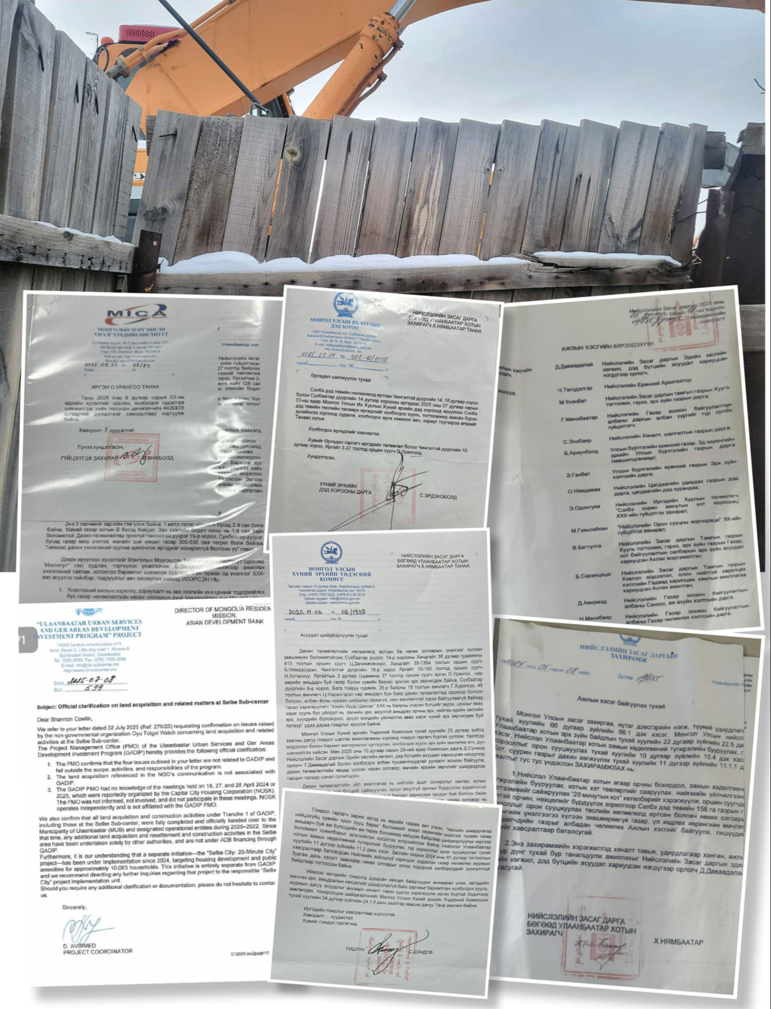 Тэрээр Хүний эрхийн үндэсний комисс, УИХ-ын Хүний эрхийн хороо, Олон улсын Эмнести Интернэшнл байгууллага, Сэлбэ дэд төв төслийн Техник туслалцааны хөрөнгө оруулагч Азийн хөгжлийн банкны Монгол Улс дахь суурин төлөөлөгч, Нийслэл болон дүүрэг, бага, хороо, газрын, үл хөдлөх хөрөнгийн үнэлгээний хийдэг байгууллагууд гээд бүгдэд хандаад тусыг эс олсон байна. Хамгийн хачирхалтай нь тус Сэлбэ дэд төвийн төслийн хөрөнгө оруулагч олон улсын нэр хүндтэй байгууллага болох Азийн хөгжлийн банкны Монгол Улс дахь суурин төлөөлөгч Шэннон Коулин энэ дахин төлөвлөлтийн төсөлд манайх хамааралгүй болохыг мэдэгдсэн захидлыг 2025 оны аравдугаар сарын 16-нд иргэн О.Урангоод ирүүлсэн явдал. Тэрээр захидалдаа “АХБ-ны санхүүжүүлсэн төслийн хүрээнд дотоод шалгалт хийхийн зэрэгцээ холбогдох талуудтай уулзалт хийсэн. Эдгээр хэлэлцүүлэг, шалгалтын үр дүнд таны гомдол нь АХБ-нд холбоогүй болохыг баталгаажуулж байна” гэсэн хариу иржээ.
