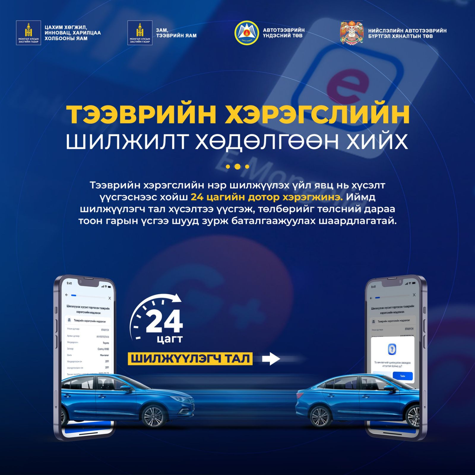 • “E-mongolia” системээр салбарын 31 үйлчилгээг үзүүлж байна. Сүүлийн 10 хоногт 400 мянган хүн үйлчлүүлж, Улаанбаатар хотын харьяалалтай 30 мянган тээврийн хэрэгслийг цахимаар хасалт хийлгэсэн байна. Авто замын цахим төлбөр авах цэгийн тоо 6-аар нэмэгдэж, 12 боллоо.