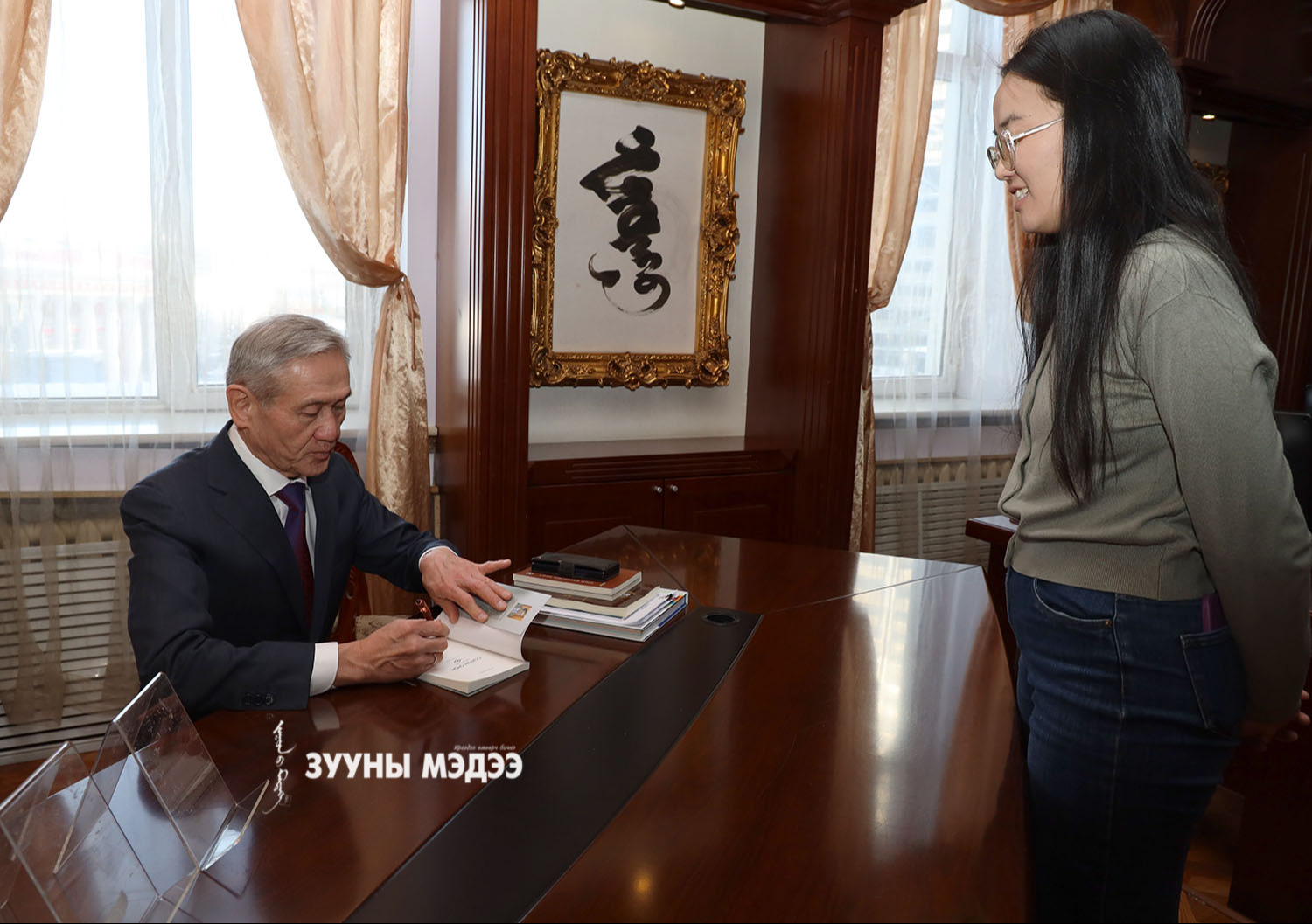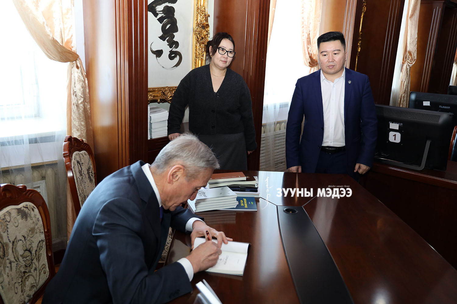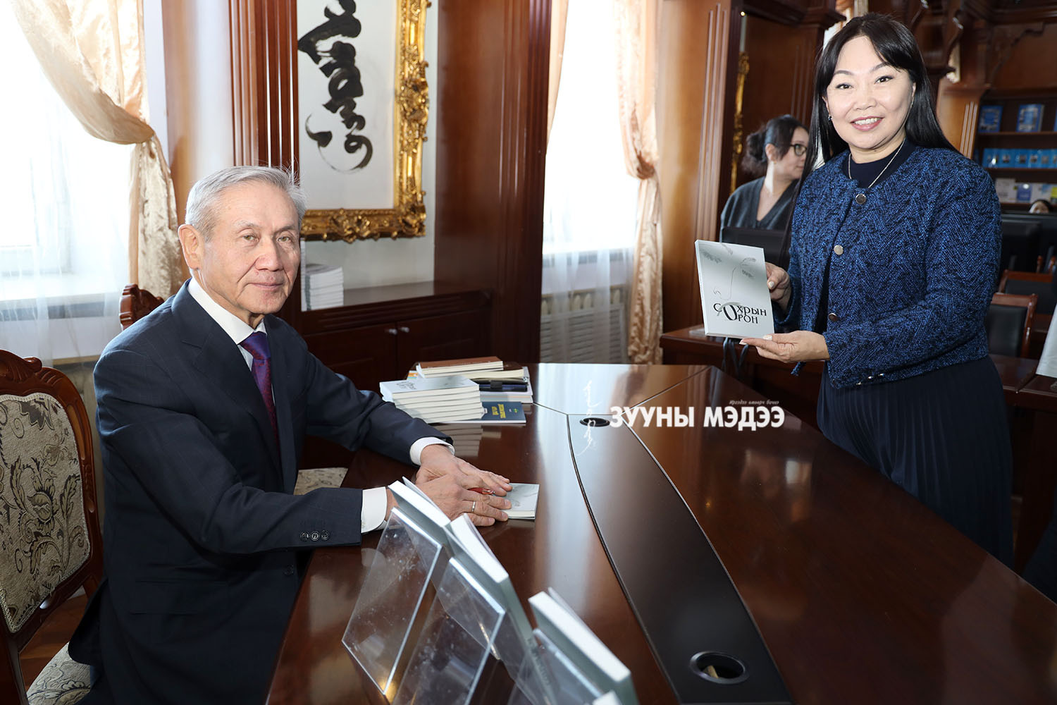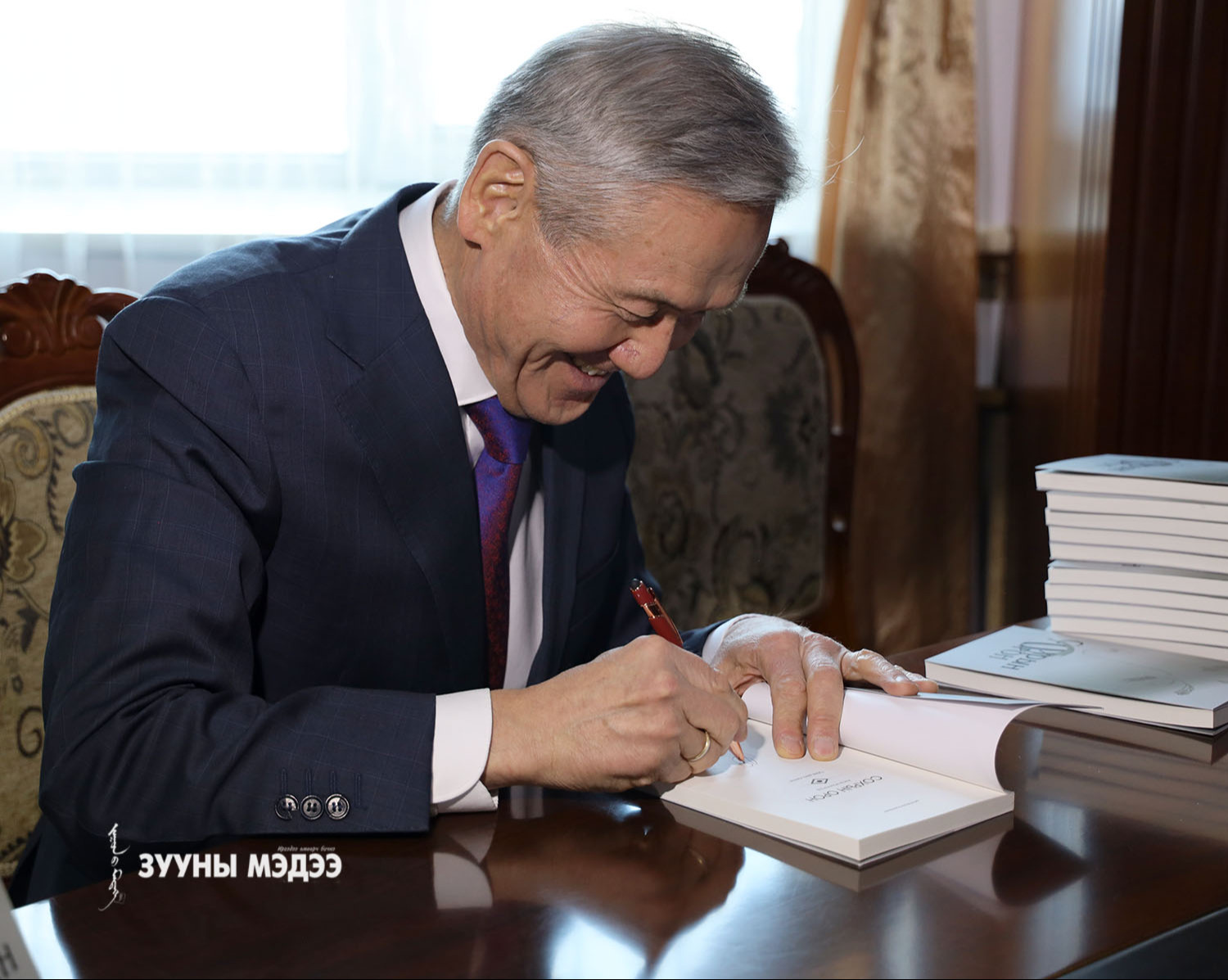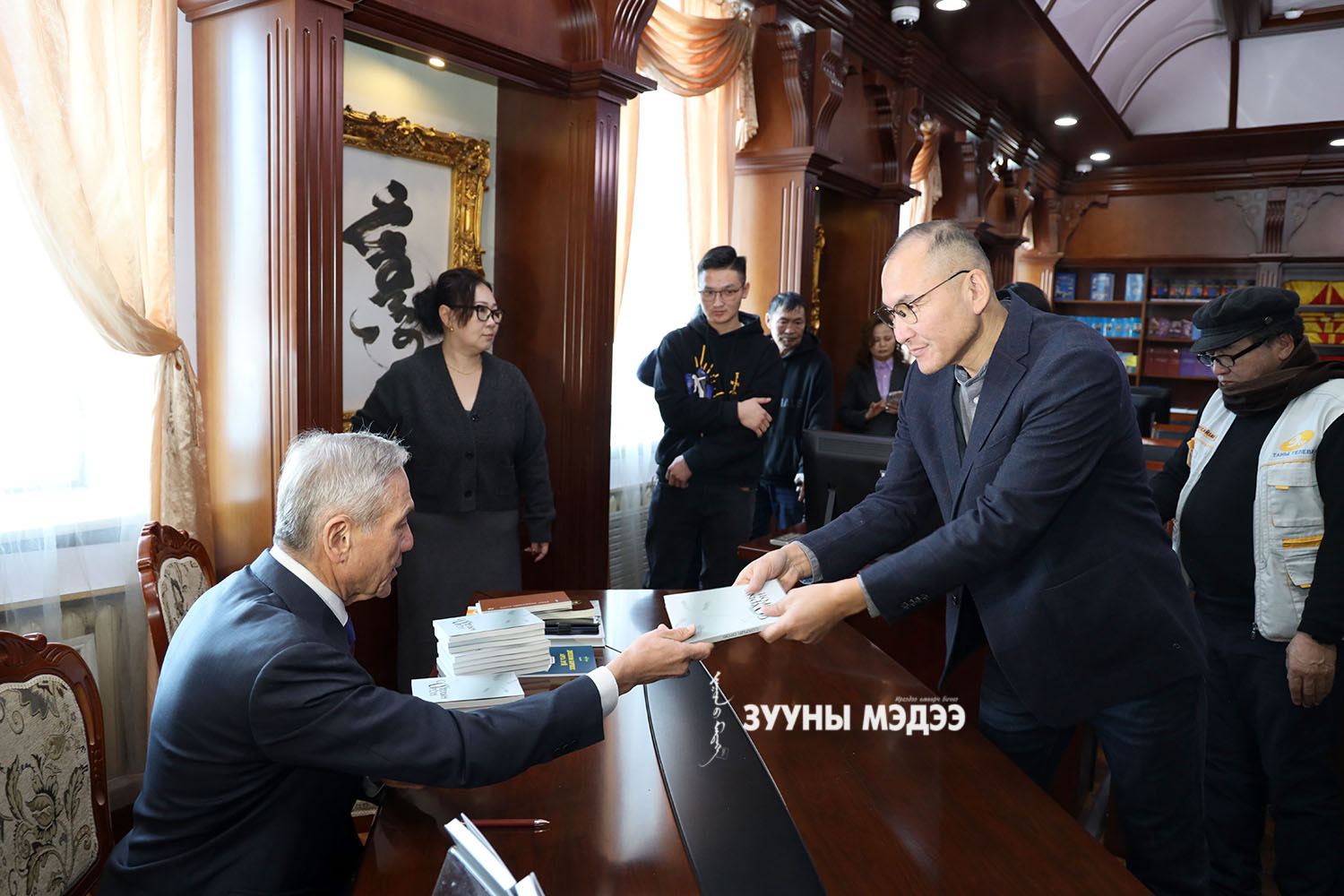 Номын нээлтийн дараа ирсэн зочиддоо гарын үсэгтэй номоо бэлэглэлээ.