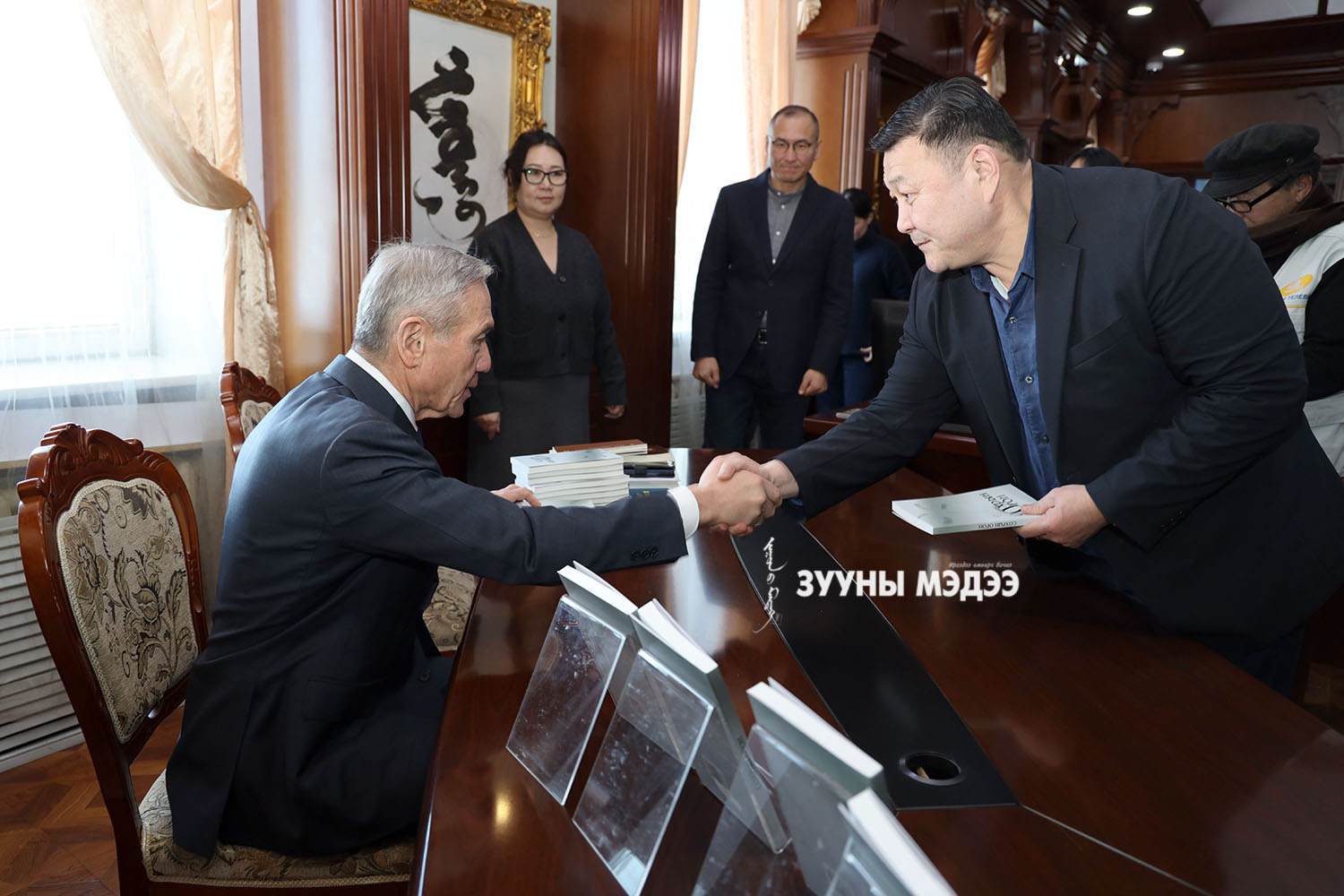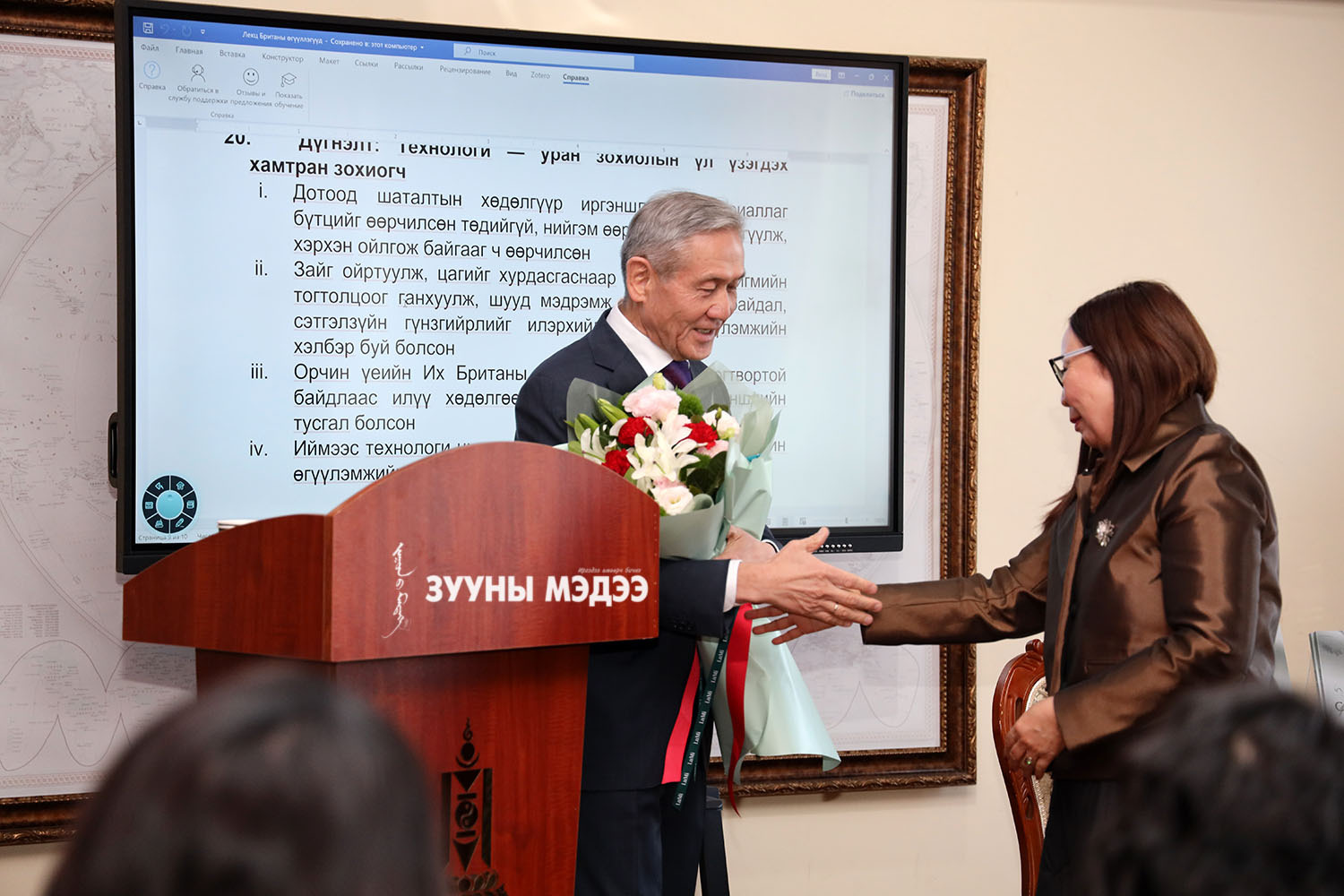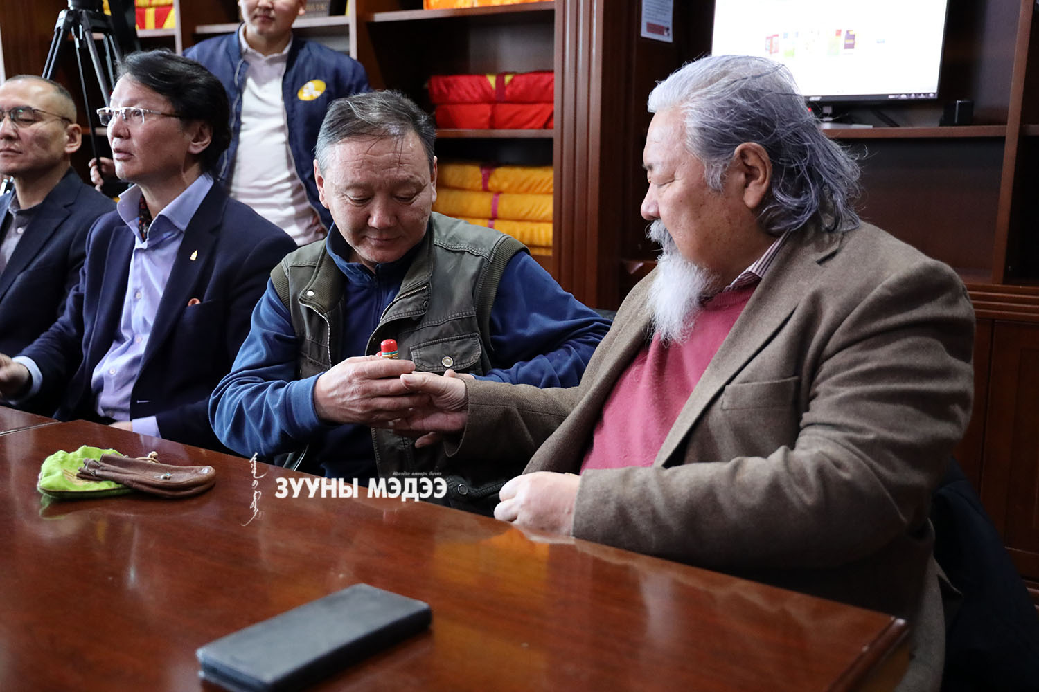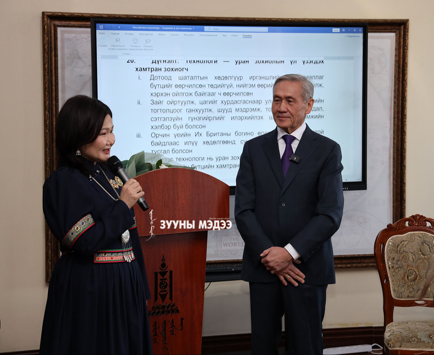 Номын нээлтийн дараа ирсэн зочиддоо гарын үсэгтэй номоо бэлэглэлээ.