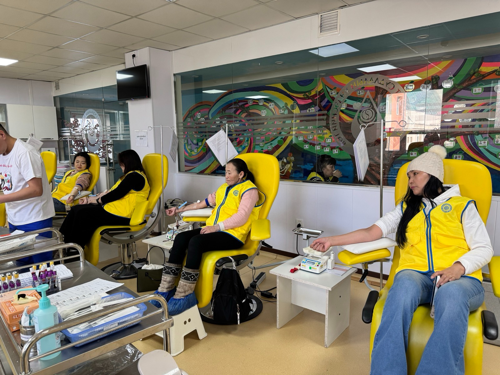 Сүмийн итгэгчид болон иргэд гээд 100 орчим хүн өглөөний 9.00 цагт ЦССҮТ дээр цуглан, эмч, эмнэлгийн ажилтнуудын зааврын дагуу анкет бөглөж, цусны шинжилгээнд хамрагдаад цусаа хандивласан байна.