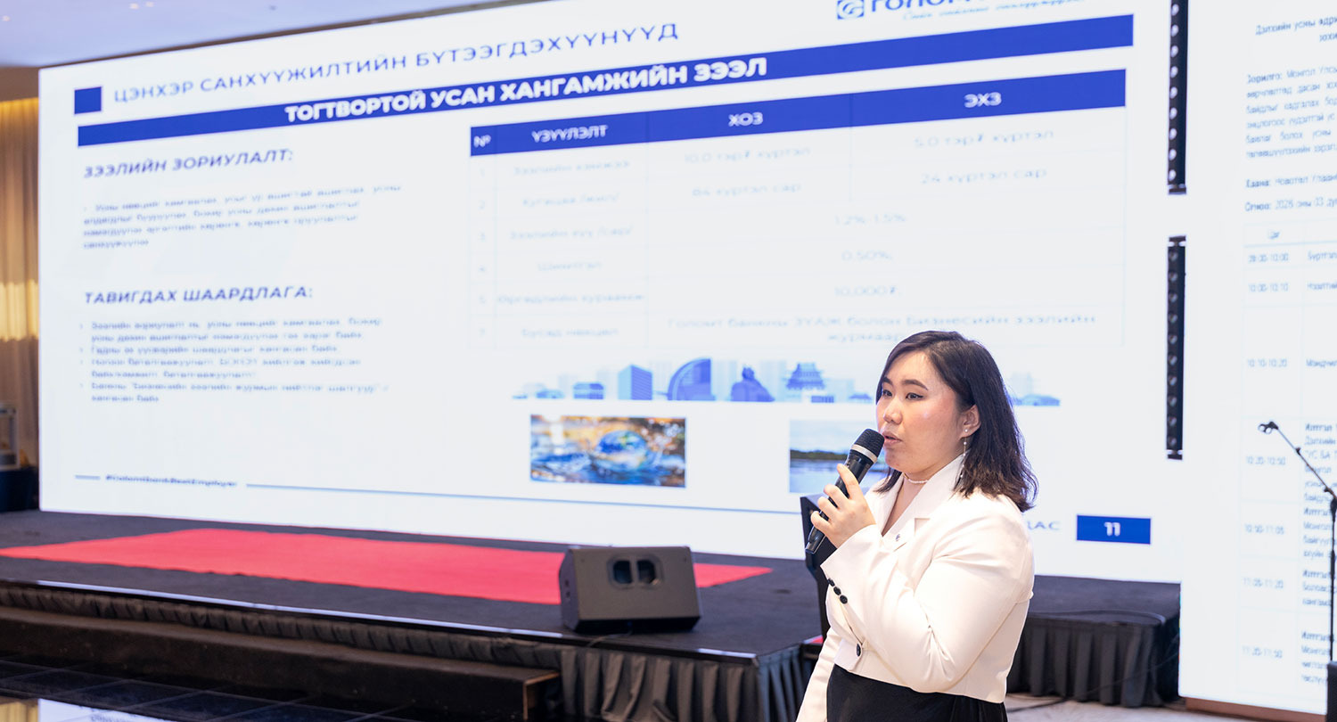 Голомт банк санхүүжилтээрээ дамжуулан Монгол Улсад тогтвортой усны нөөцийн менежментийг бэхжүүлэх зорилт тавин ажилладаг билээ. Үүний хүрээнд өнгөрсөн хоёр жилийн хугацаанд ундны усны хүртээмжийг нэмэгдүүлэх, саарал усыг дахин ашиглах, хаягдал усыг урьдчилан цэвэрлэх байгууламж барих чиглэлд нийт 21.9 тэрбум төгрөгийн санхүүжилтийг олгосон. Харин 2026 онд Голомт банк Цэнхэр санхүүжилтийг дэмжин шинэ зээлийн бүтээгдэхүүнүүдийг гаргаад байна. Үүнд: