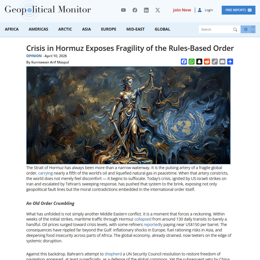Эх сурвалж: https://www.geopoliticalmonitor.com/crisis-in-hormuz-exposes-fragility-of-the-rules-based-order/