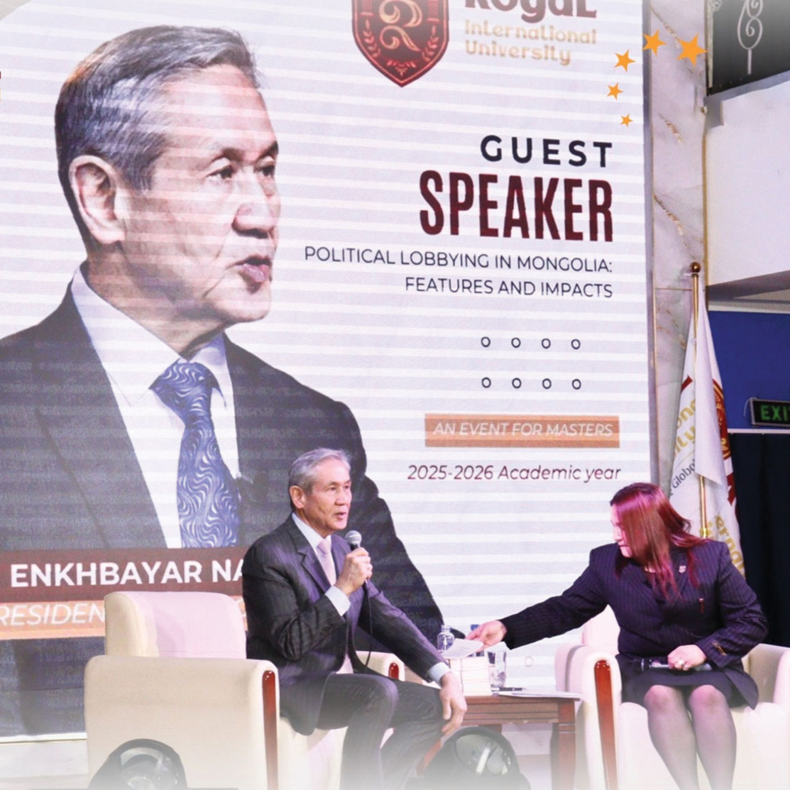 “Рояал” олон улсын их сургуулийн 2025-2026 оны хичээлийн жилд магистрантаар суралцаж буй оюутнуудад зориулж, “Монголын улс төр дэх лоббизм” сэдвийн хүрээнд Монгол Улсын гурав дахь Ерөнхийлөгч Н.Энхбаяр лекц уншиж, нээлттэй ярилцлага өрнүүлснийг бүрэн эхээр нь хүргэж байна.