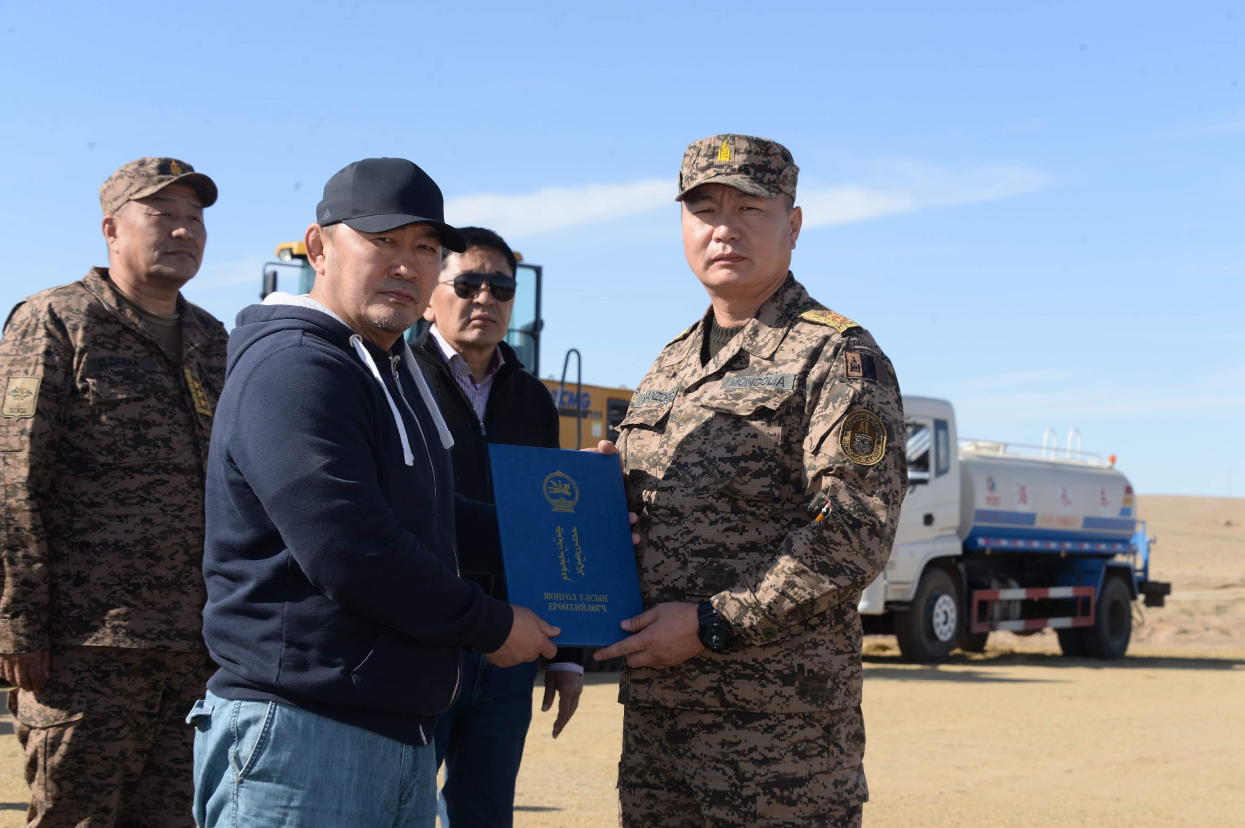 Ерөнхийлөгч Х.Баттулга Цэргийн дээд цол олгох тухай зарлиг гаргаж, ЗХЖШ-ын дарга, бригадын генерал Д.Ганзоригт хошууч генерал цол олголоо. Зарлигийг танилцуулж, цол олгох ёслол Дорноговь аймгийн Зүүнбаян сумын нутагт болж, төмөр замын бүтээн байгуулалтын ажилд гар бие оролцож буй цэргийн байгууллагын ажилтан, алба хаагчид оролцсон байна. “Генерал цолыг Зүүнбаянд олгосон нь та бүхэнд урам зориг өгөх гэсэн зорилготой” хэмээн Монгол Улсын Ерөнхийлөгч Х.Баттулга тодотгоод 1947-1949 оны үед ЗХУ /тухайн үеийн нэрээр/-ын Наушки өртөөнөөс Улаанбаатар хот хүртэл 400 км төмөр замыг хоёр жилийн дотор барьж дуусгасан байдаг талаар ярилаа. Улмаар 2019 онд буюу техник, технологи хөгжсөн өнөө үед ижил хэмжээний замыг барьж, байгуулж байгаа тул төлөвлөсөн хугацаанд нь бүтээн байгуулалтын ажлаа дуусгах хэрэгтэй гээд нийт бие бүрэлдэхүүнд ажлын амжилт хүсэв. Ерөнхийлөгч Х.Баттулга Тавантолгой-Зүүнбаян чиглэлд барьж буй төмөр замын трассын дагуу ажлын явцтай танилцаж байгаа юм.