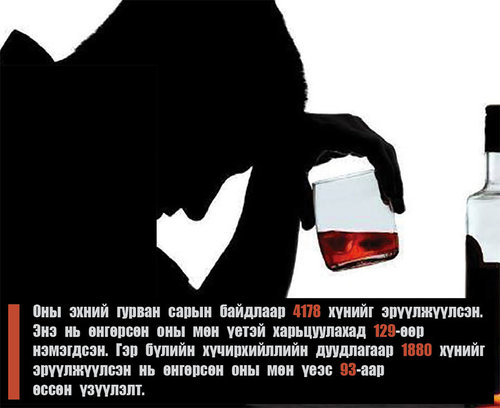 Сархад савнаасаа бусдыг дийлнэ гэгчээр архинаас үүдэлтэй гэмт хэрэг сүүлийн саруудад нэмэгджээ. Хөл хорио тогтоосонтой холбоотойгоор ахуйн хүрээнд архидах нь ихэссэн байна. Үүнийг ЦЕГ-аас гаргасан судалгаанаас харж болно. Тодруулбал, энэ оны эхний гурван сарын байдлаар 4178 хүнийг эрүүлжүүлсэн. Энэ нь өнгөрсөн оны мөн үетэй харьцуулахад 129-өөр нэмэгдсэн.